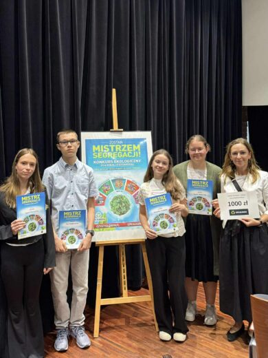 Uroczysta gala rozdania nagród w konkursie miejskim „Zostań mistrzem segregacji” odbyła się w Teatr im. Andreasa Gryphiusa w GłogowieWe wtorek 30 września zespół I LO w składzie:- Agata Ptaszyńska kl.2ag, – Jagoda Stachowiak kl.2ag, – Marcin Dąbrowski kl.2d, – Igor Samborowicz kl.3b, – Dominika Sztąberek kl.3cu, wziął udział w uroczystej gali rozdania nagród za zbieranie surowców wtórnych, za rok szkolny 2024/25. Od wielu lat Urząd Miasta wraz z GPK Głogów organizuje konkurs „Zostań Mistrzem Segregacji”. W tym roku nasza szkoła dołączyła po raz pierwszy do konkursu i od razu z sukcesem! Nasi uczniowie, pod opieką szkolnego koordynatora, p. Joanny Radzieja, zajęli I m-ce w ilości zebranych nakrętek plastikowych. Nagrodą dla naszej szkoły jest 1000 zł, które zostaną dobrze spożytkowane na cele dydaktyczne. Kolejna gala za rok, a już teraz zachęcamy naszych uczniów do włączenia się w kolejną edycję konkursu.