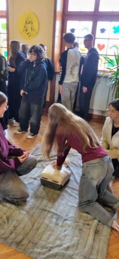 16 października po raz kolejny w naszej szkole świętowaliśmy Europejski Dzień Przywracania Czynności Serca .Celem tego dnia jest popularyzacja wiedzy na temat zasad udzielania pierwszej pomocy w stosunku do osoby, u której wystąpiło nagłe zatrzymanie krążenia. Z okazji tego święta, przystąpiliśmy do akcji “Bicia Rekordu” z WOŚP. Punktualnie o 12:00 w całym kraju przystąpiono do próby bicia rekordu, polegającego na prowadzeniu resuscytacji krążeniowo-oddechowej na fantomie przez 30 minut.