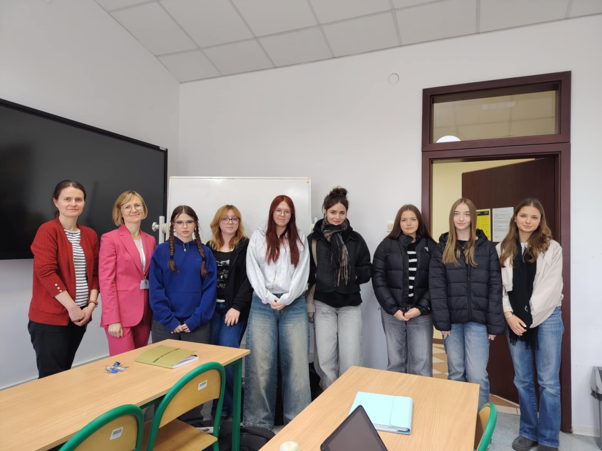 W zajęciach uczestniczyły Karina Lewicka (1d), Roma Lizurej (1d), Zofia Marciniak (1d), Dominika Sławicz (1d), Matylda Stefaniak (1d), Alicja Wiśniewska (1d) i Zuzanna Chaberek (3e), które miały okazję doskonalić j. angielski w środowisku akademickim i na jeden dzień stać się studentkami.